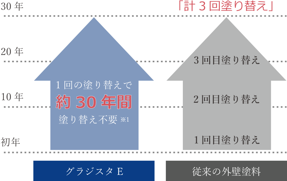 しかしグラジスタは約20年~30年※と塗り替えの年数に大きな差が出ます。